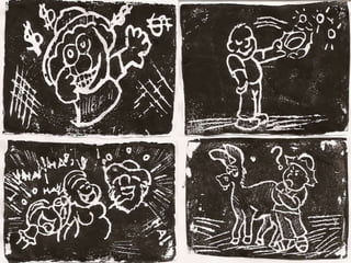 O documento discute a importância da gravura como forma de expressão artística e comunicação desde a pré-história, e propõe atividades para estudantes aprenderem sobre a técnica da gravura, sua evolução histórica e produzirem suas próprias gravuras ilustrando um conto popular nordestino usando isopor como matriz.