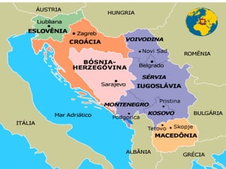 O documento descreve os principais aspectos do Islã, incluindo seus cinco pilares, as diferenças entre sunitas e xiitas, a jihad e principais grupos terroristas como a Al Qaeda e o Taleban. Também aborda o conflito entre israelenses e palestinos e a dissolução da Iugoslávia após a Guerra Fria.