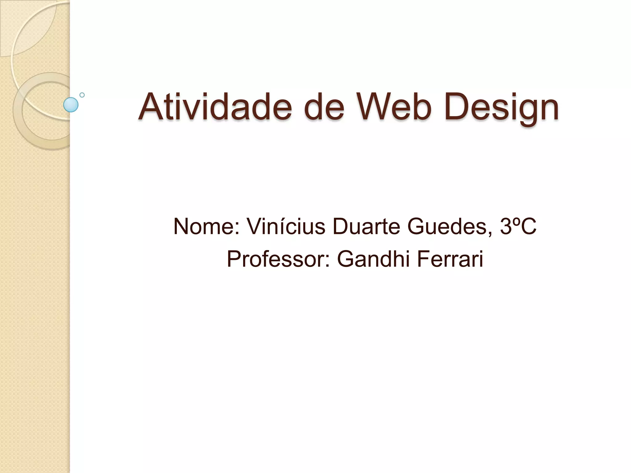 Atividade de WebDesignNome: Vinícius Duarte Guedes, 3ºCProfessor: Gandhi Ferrari