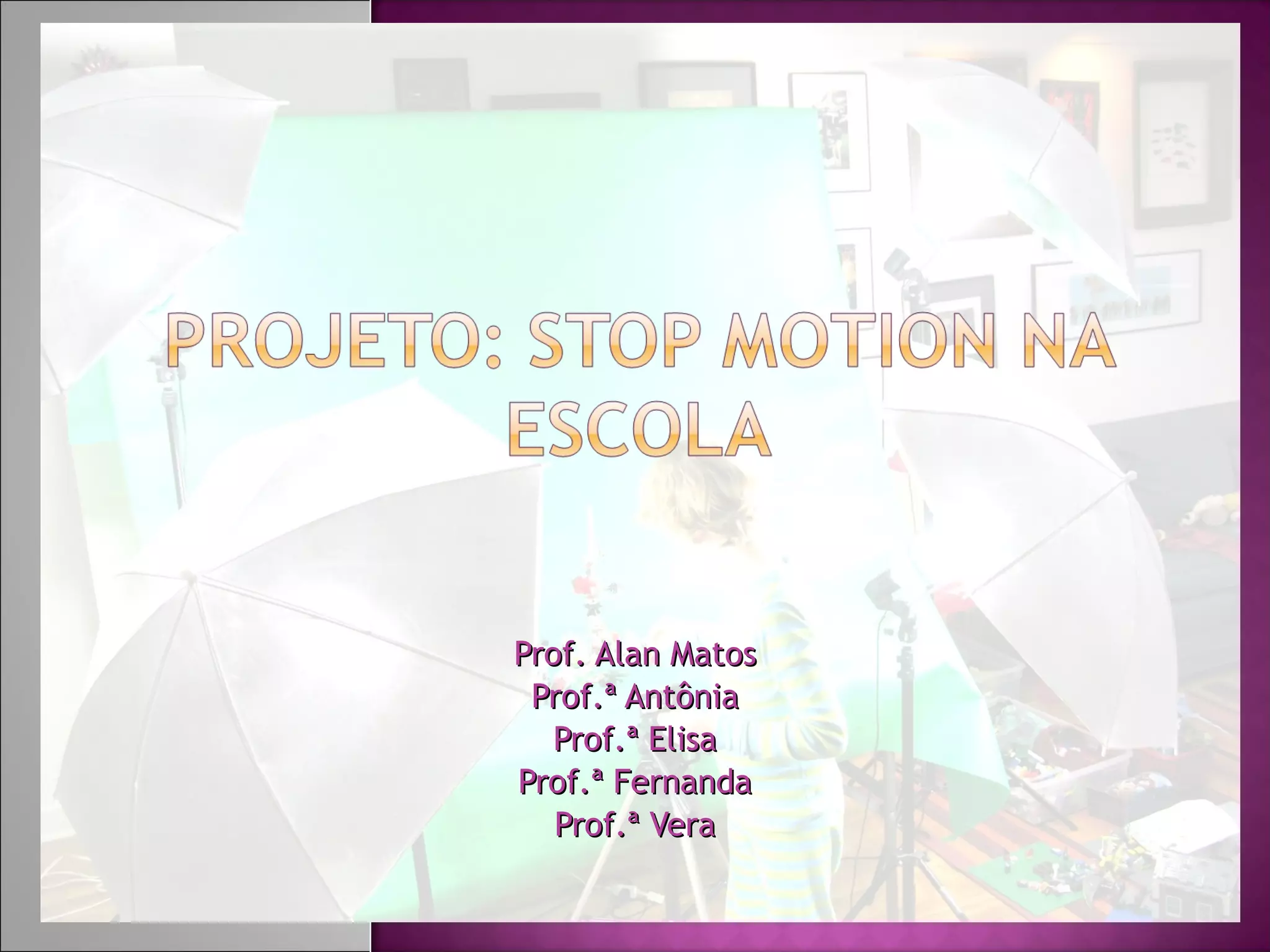 O documento propõe um projeto escolar para desenvolver vídeos educativos utilizando a técnica de stop motion com massa de modelar e outros materiais. O projeto visa promover a integração interdisciplinar, despertar o interesse pelas novas tecnologias e estimular a criação e apresentação de vídeos que recontam histórias.