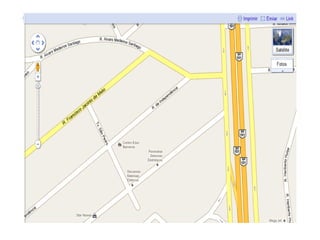 Este documento fornece instruções para fazer um mapa de escala de um quarteirão aleatório usando o Google Earth. Os alunos devem escolher uma área urbana, usar as ferramentas de mapas para identificar o endereço, reproduzir o mapa em papel A3 e incluir coordenadas geográficas, posição geográfica, um ponto de referência, escalas numérica e gráfica corretas.