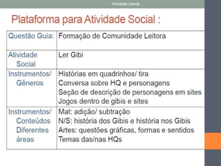 Este documento descreve uma pesquisa sobre o uso de atividades sociais como método para ensinar línguas estrangeiras em contextos escolares. O documento discute a fundamentação teórica, os participantes, os objetivos, os métodos de coleta de dados e as referências bibliográficas utilizadas. O foco é analisar como atividades sociais colaborativas e reflexivas podem melhorar a formação de professores e o ensino de línguas estrangeiras.