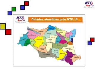 O documento descreve o Núcleo de Tecnologia Educacional 16 (NTE16), um centro de formação de professores no estado da Bahia que promove a inclusão digital nas escolas públicas através da capacitação de educadores e disponibilização de laboratórios de informática e conteúdos online.