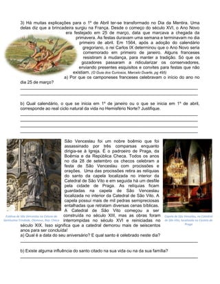 3) A origem da tradição do Dia da Mentira na França e a mudança do calendário, e a celebração do dia de São Venceslau na Rep