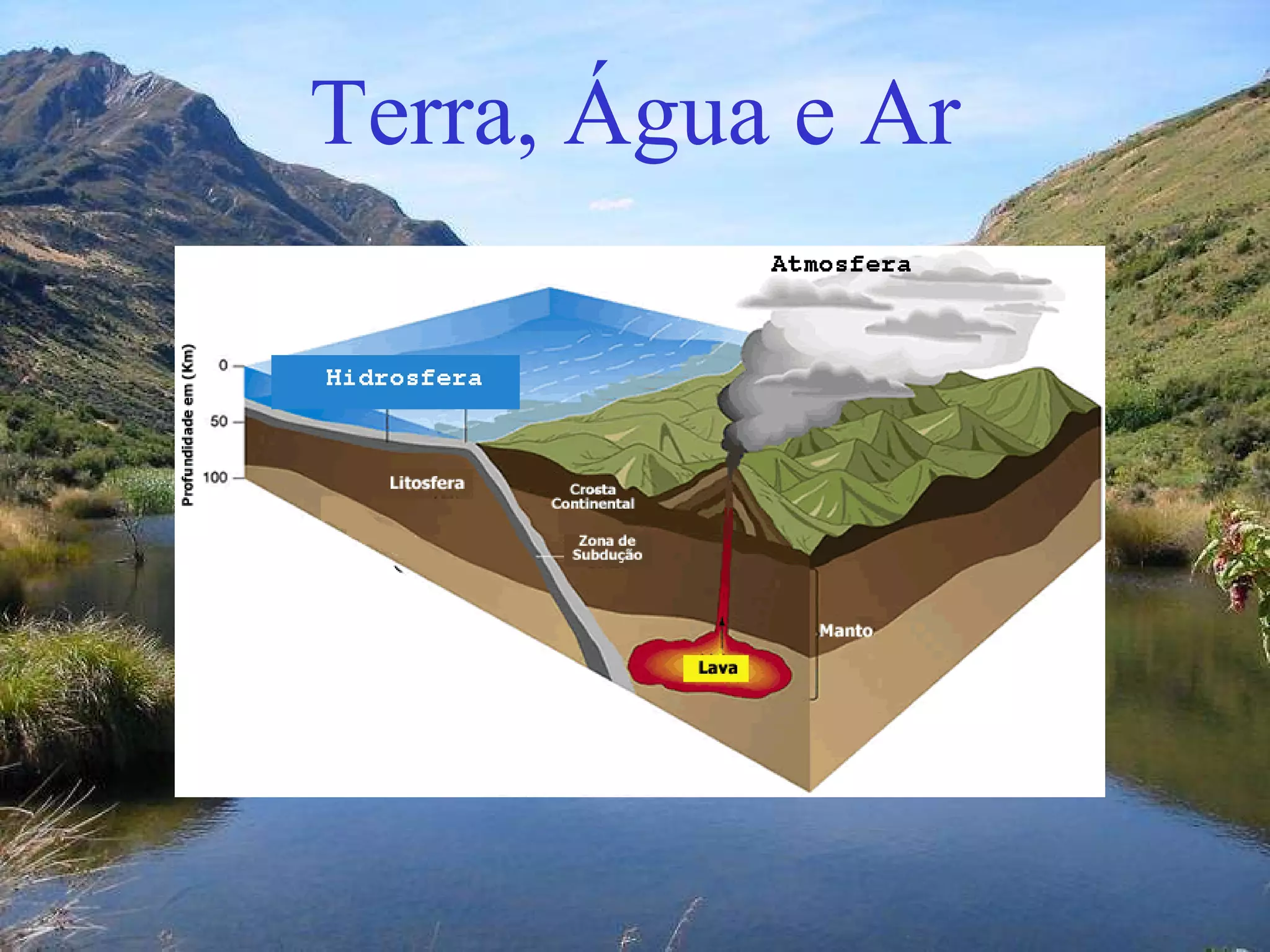 A atmosfera primitiva da Terra era composta principalmente por hidrogênio e hélio. Com o tempo, esses gases escaparam para o espaço devido à gravidade fraca da Terra. A atmosfera evoluiu para incluir vapor d'água, dióxido de carbono e outros gases à medida que a vida surgia e os continentes se formavam. Atualmente, a atmosfera protege a Terra e possui nitrógeno, oxigênio e outros gases importantes envolvidos em ciclos vitais.