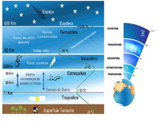 O documento discute como a atmosfera terrestre protege a vida na Terra dos raios ultravioleta e controla as temperaturas, além de mencionar a probabilidade de impactos de asteroides de diferentes tamanhos e o risco de um asteroide atingir a Terra em 2880.