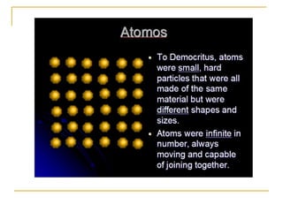 1) O documento descreve a evolução dos modelos atômicos ao longo do tempo, desde a ideia de átomo proposto por filósofos gregos até os modelos modernos.