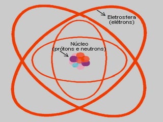 O documento explica os principais conceitos da estrutura atômica, incluindo: (1) Átomos são constituídos de um núcleo central com prótons e nêutrons, cercado por elétrons; (2) O número atômico define o elemento químico, enquanto isótopos e isóbaros variam em massa e nêutrons; (3) Íons são átomos que ganharam ou perderam elétrons, resultando em cargas positivas ou negativas.