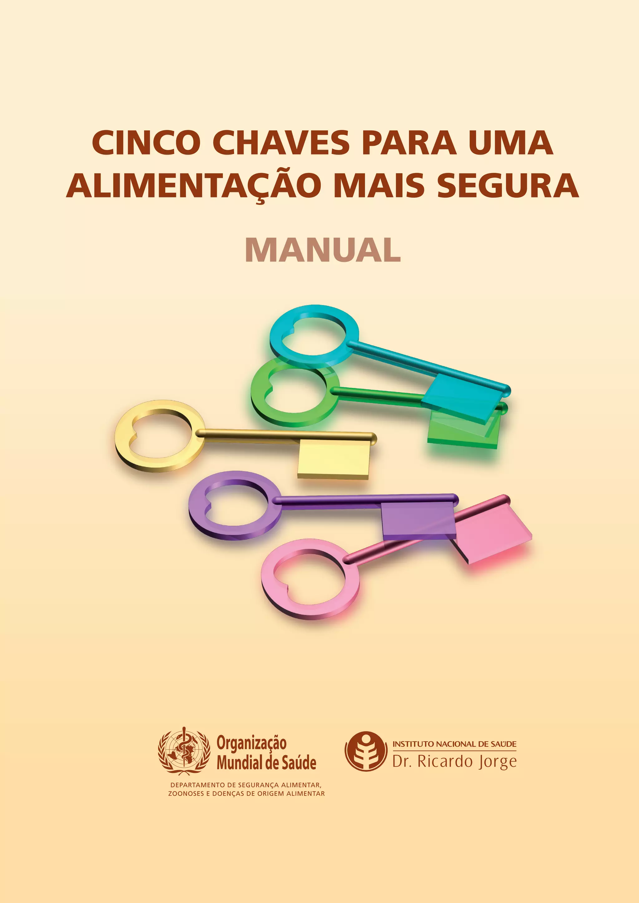Este documento fornece informações sobre as cinco chaves para uma alimentação mais segura, de acordo com a Organização Mundial de Saúde. Apresenta brevemente o problema das doenças de origem alimentar e a importância da formação sobre higiene alimentar. Detalha as cinco chaves, que são: 1) Mantenha a limpeza; 2) Separe alimentos crus de alimentos cozinhados; 3) Cozinhe bem os alimentos; 4) Mantenha os alimentos a temperaturas seguras; 5) Use água e matérias-