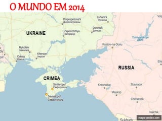 O documento discute diversos assuntos internacionais e nacionais de 2014, incluindo: 1) a crise na Ucrânia e a anexação da Crimeia pela Rússia; 2) 90 anos sem Lenin e sua influência histórica; 3) os protestos do "rolezinho" no Brasil e a desigualdade social.