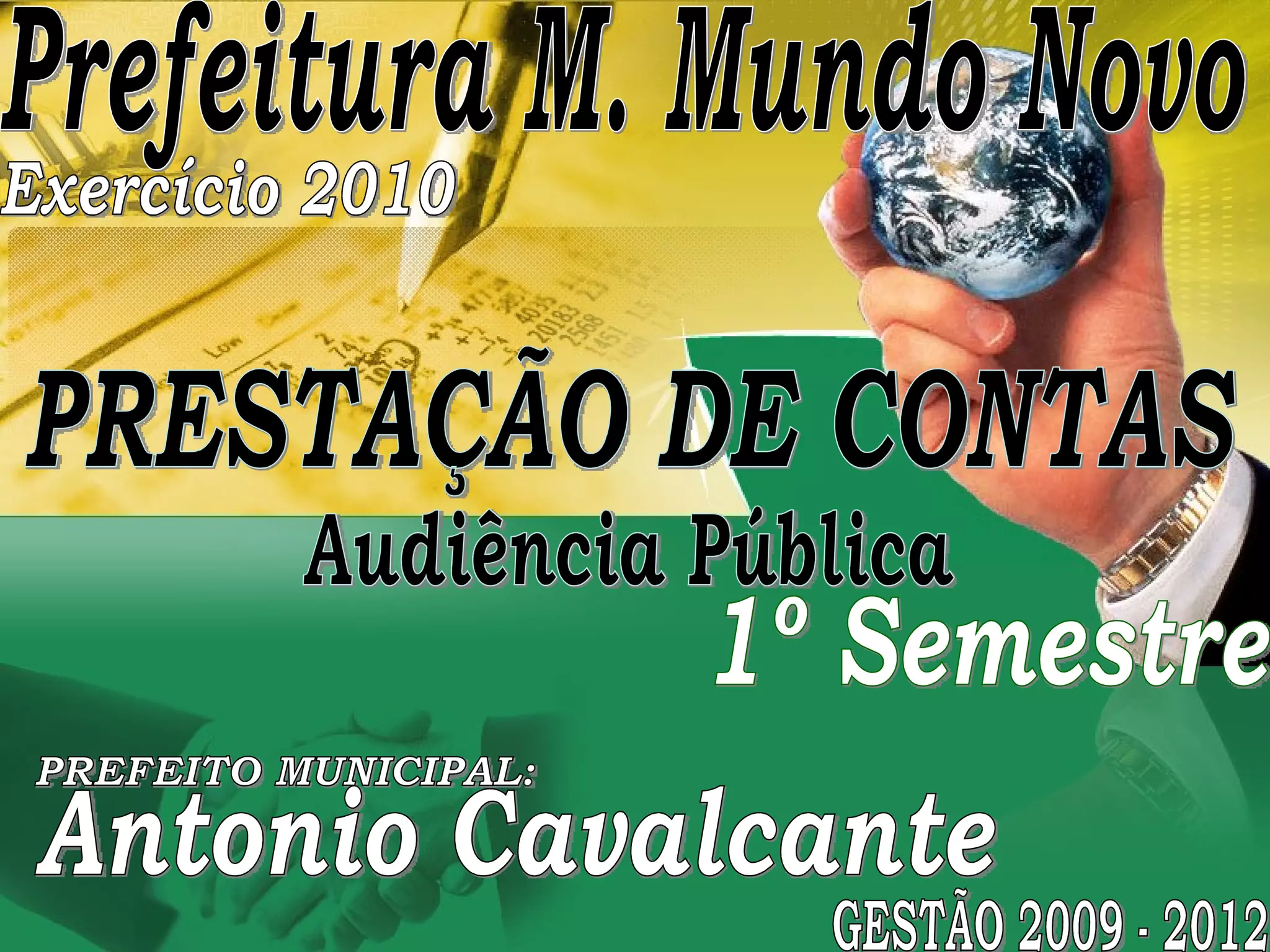 O documento apresenta os dados financeiros da prefeitura de Mundo Novo no primeiro semestre de 2010, incluindo as receitas arrecadadas por mês, as despesas pagas e empenhadas, e a aplicação dos recursos nos setores de educação e saúde em comparação com os limites constitucionais.