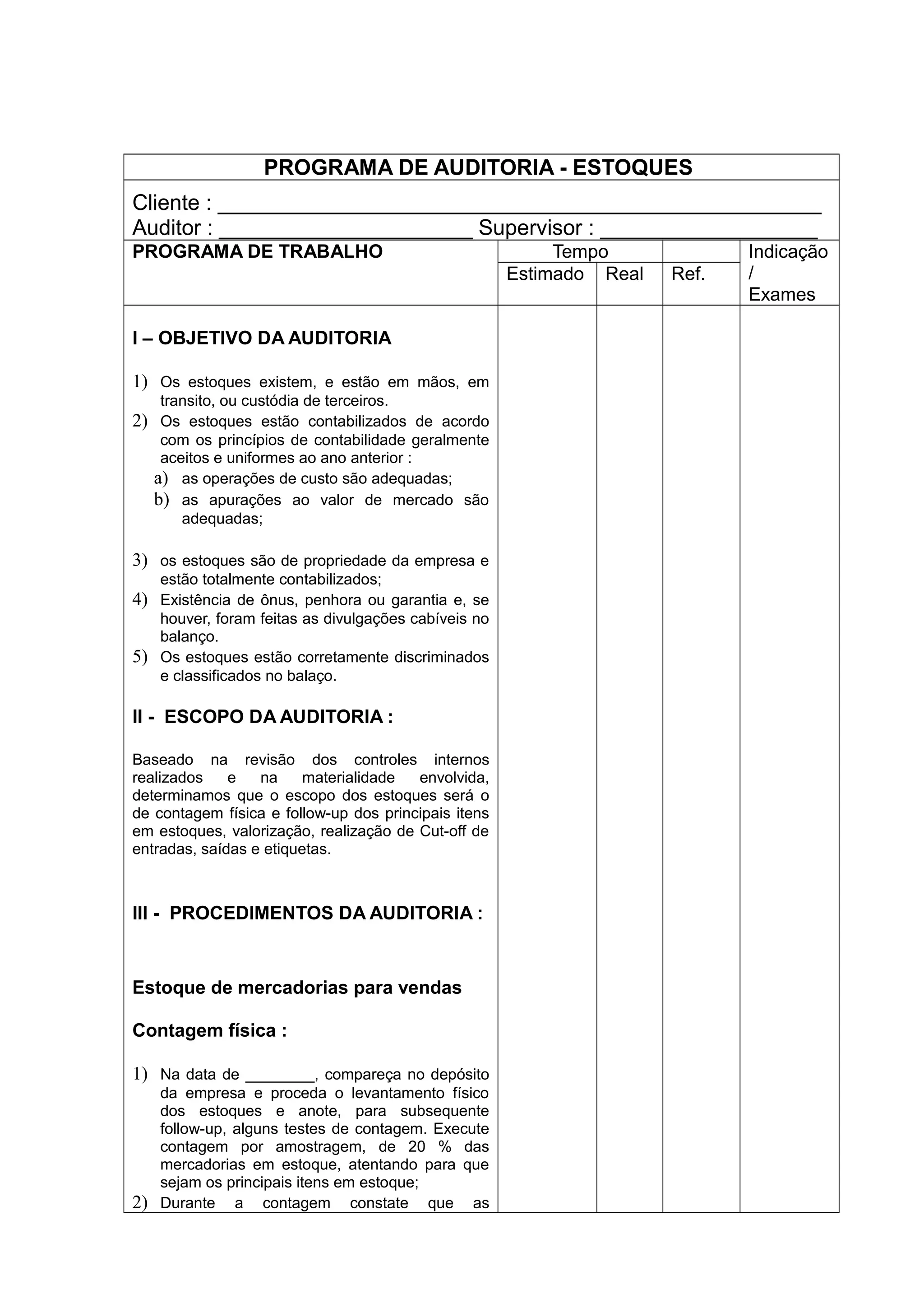 PROGRAMA DE AUDITORIA- ESTOQUES