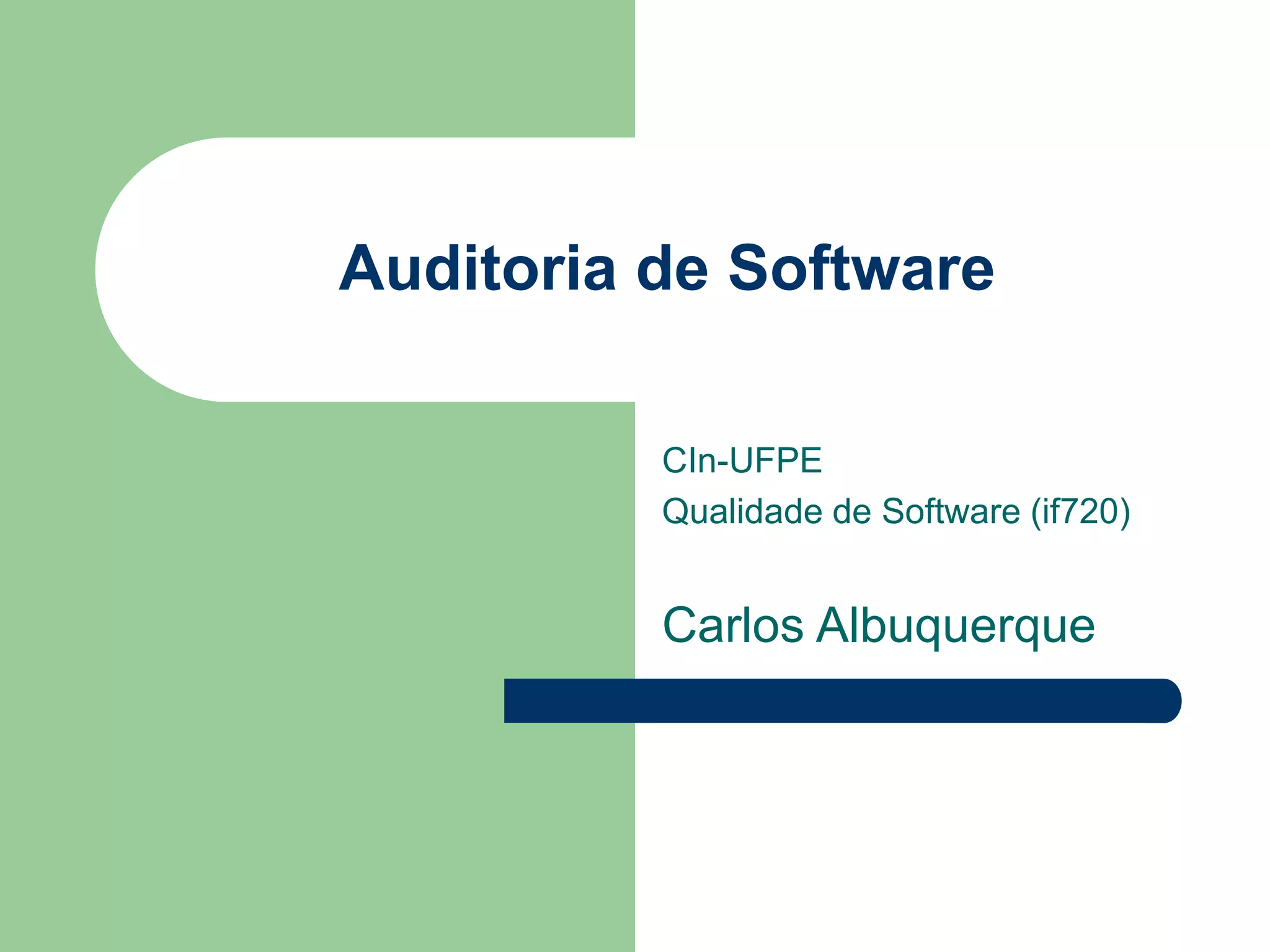 Este documento discute conceitos, princípios e processos de auditoria de software, incluindo tipos de auditoria, métricas e boas práticas. O documento fornece uma visão geral do processo de auditoria, desde o planejamento até a finalização com a emissão de um relatório.