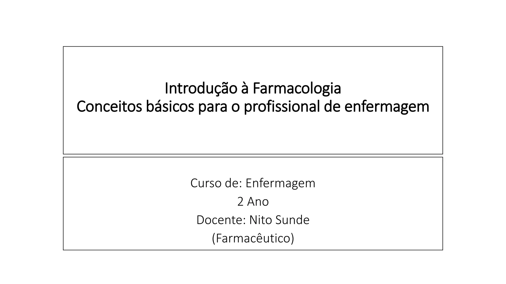O documento apresenta uma introdução à farmacologia para profissionais de enfermagem, definindo o termo e suas principais áreas de estudo, como farmacocinética, farmacodinâmica e farmacoterapêutica. Também define conceitos básicos como droga, fármaco, dose e reações adversas, e descreve os diferentes tipos de medicamentos quanto à origem e forma farmacêutica.