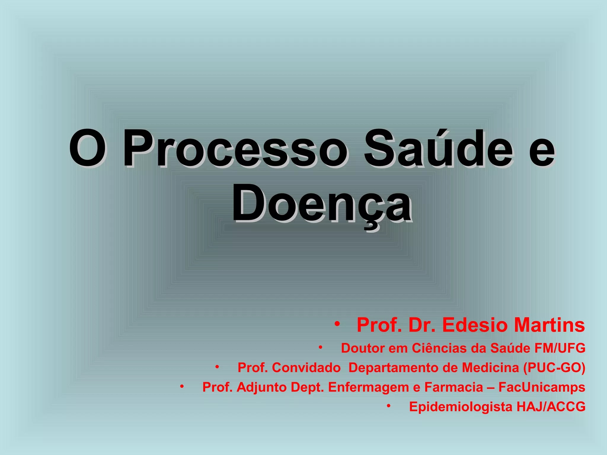 1) O documento discute os conceitos de saúde e doença, incluindo suas definições segundo a OMS e dicionários. 2) Apresenta as teorias causais de doenças, desde a unicausal até a determinação social. 3) Discutem-se os diferentes fatores que determinam doenças, como genéticos, ambientais e estilo de vida.