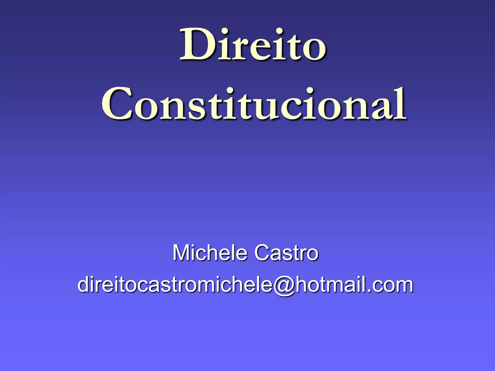 O documento discute os principais elementos do Estado e da Constituição brasileira, incluindo o povo, território, soberania, separação de poderes, formas de governo e regimes políticos. Também aborda os instrumentos da democracia participativa e as teorias sobre a aplicabilidade e temporalidade das normas constitucionais.
