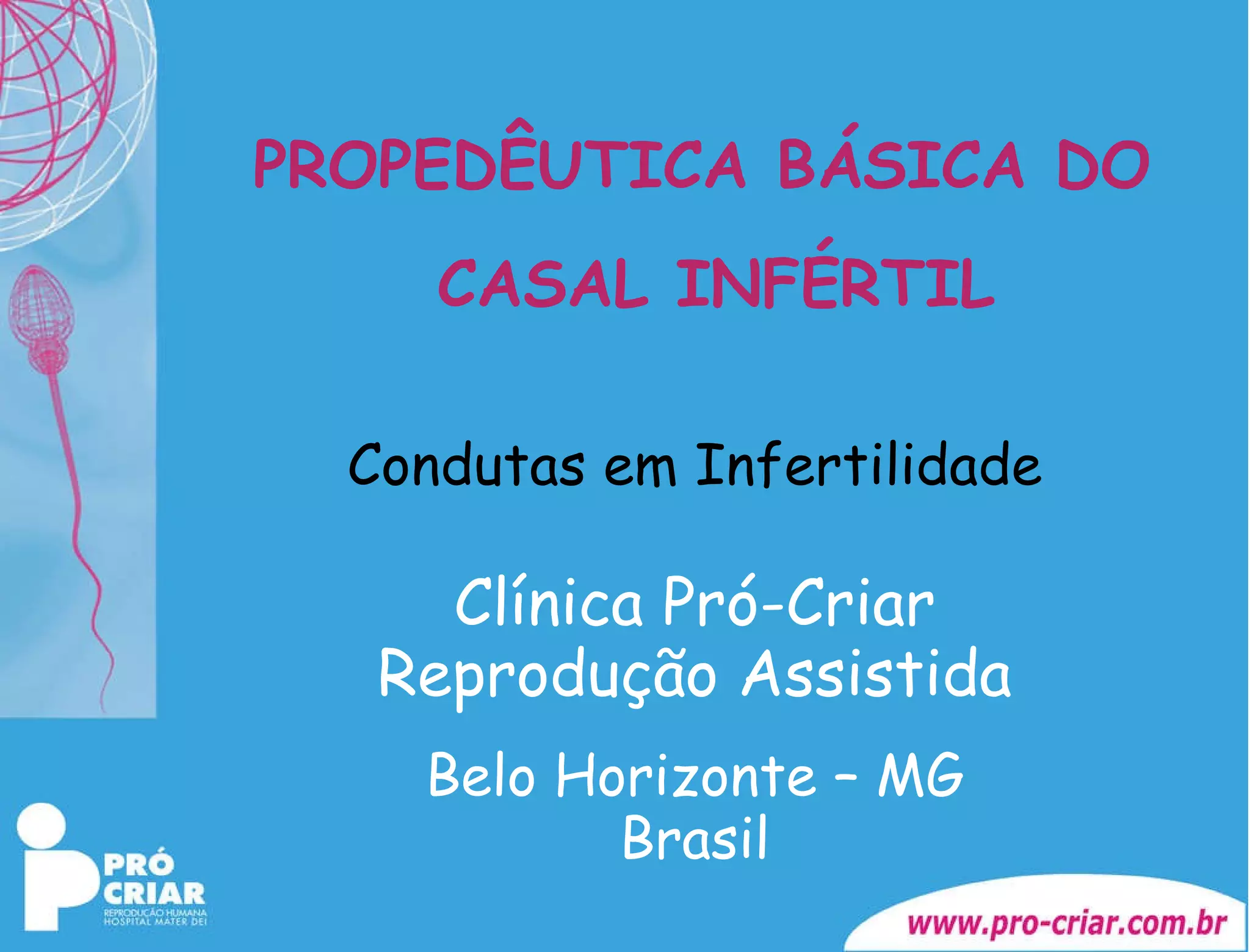 1) O documento discute conceitos e causas de infertilidade, incluindo epidemiologia, propedêutica do casal infértil e exames necessários para avaliação.