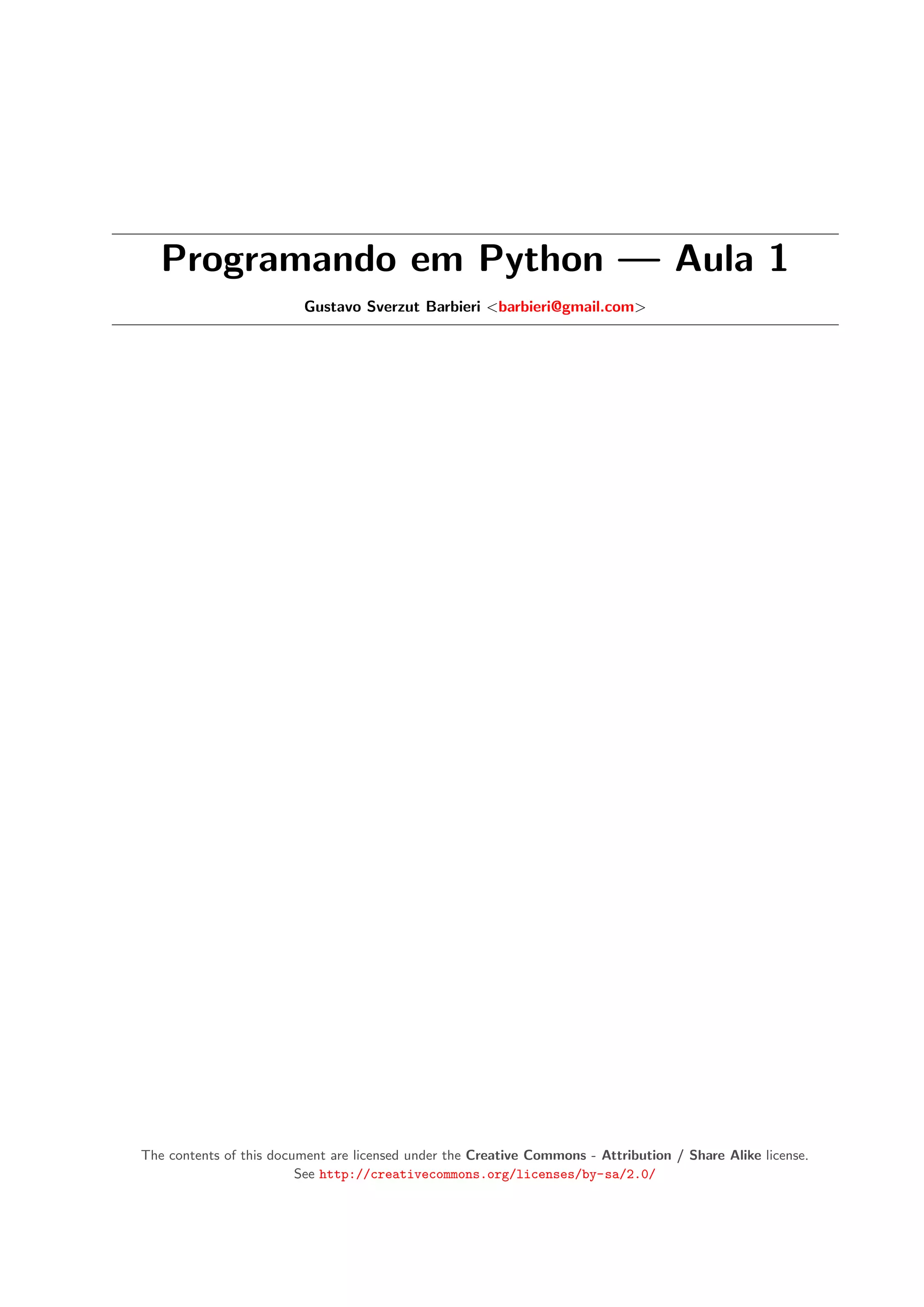 1. O documento apresenta uma aula introdutória sobre programação em Python.