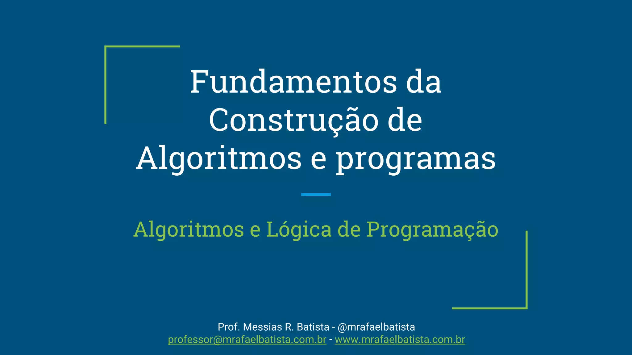 O documento apresenta os fundamentos da construção de algoritmos e programas, incluindo a lógica, lógica de programação e algoritmos. Discute a arquitetura básica do computador, memória, dispositivos de entrada e saída. Explica o que é lógica, lógica de programação e como algoritmos representam o raciocínio lógico de forma estruturada através de uma sequência de passos.