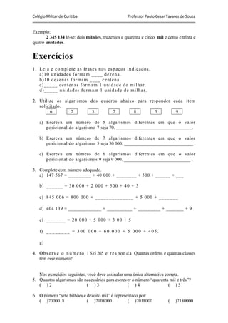 d)_____ unidades formam 1 unidade de milhar.