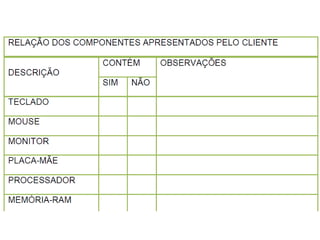 O documento fornece instruções sobre como cuidar corretamente de componentes eletrônicos em um laboratório de hardware, incluindo armazená-los e transportá-los em recipientes antiestáticos e manter placas protegidas em sacos antiestáticos, mesmo as com defeito. Também discute a importância de organização no ambiente de trabalho.