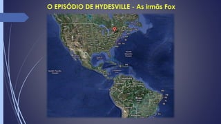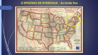 Em 1848, na aldeia de Hydesville, Nova York, as irmãs Kate e Margaret Fox, de 11 e 14 anos respectivamente, começaram a ouvir ruídos estranhos vindos da cabana onde moravam, que eram atribuídos ao espírito de um homem assassinado. Isso marcou o início de suas carreiras como médiuns, embora tenham morrido pobres e esquecidas. Anos depois, os ossos do homem foram encontrados, confirmando a história.