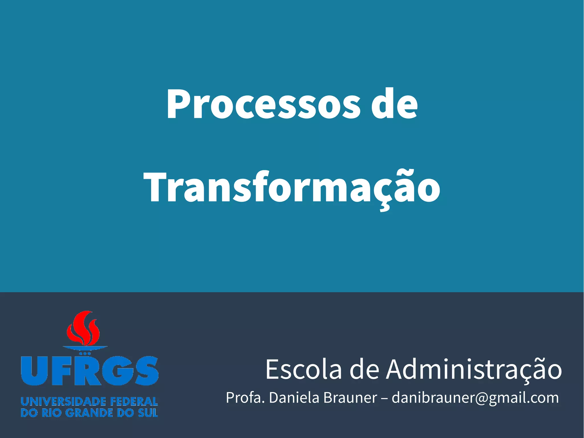 1) Processos de transformação são arranjos de recursos que transformam entradas em saídas através da produção de bens e serviços; 2) As entradas incluem recursos a serem transformados como matérias-primas e informações, e recursos de transformação como equipamentos e pessoal; 3) As saídas podem ser produtos tangíveis, serviços intangíveis, ou ambos.