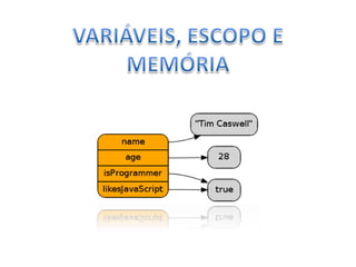 O documento apresenta uma introdução ao JavaScript, incluindo sua história, sintaxe e principais conceitos. Ele discute a evolução da linguagem desde sua criação pela Netscape em 1995, suas implementações, como ECMAScript, e os modelos de objetos do DOM e BOM. Por fim, aborda práticas recomendadas para a inclusão de JavaScript em páginas HTML e conceitos fundamentais da linguagem.
