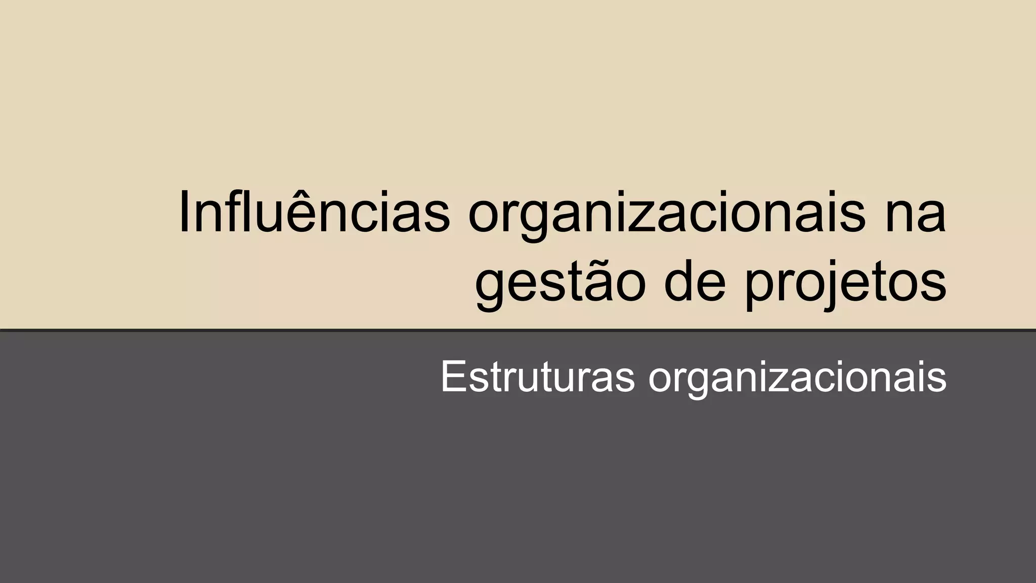 O documento discute estruturas organizacionais e seu impacto na gestão de projetos. Ele descreve três tipos principais de estruturas - funcional, matricial e projetizada - e como cada uma influencia o papel do gerente de projetos e a entrega de resultados.