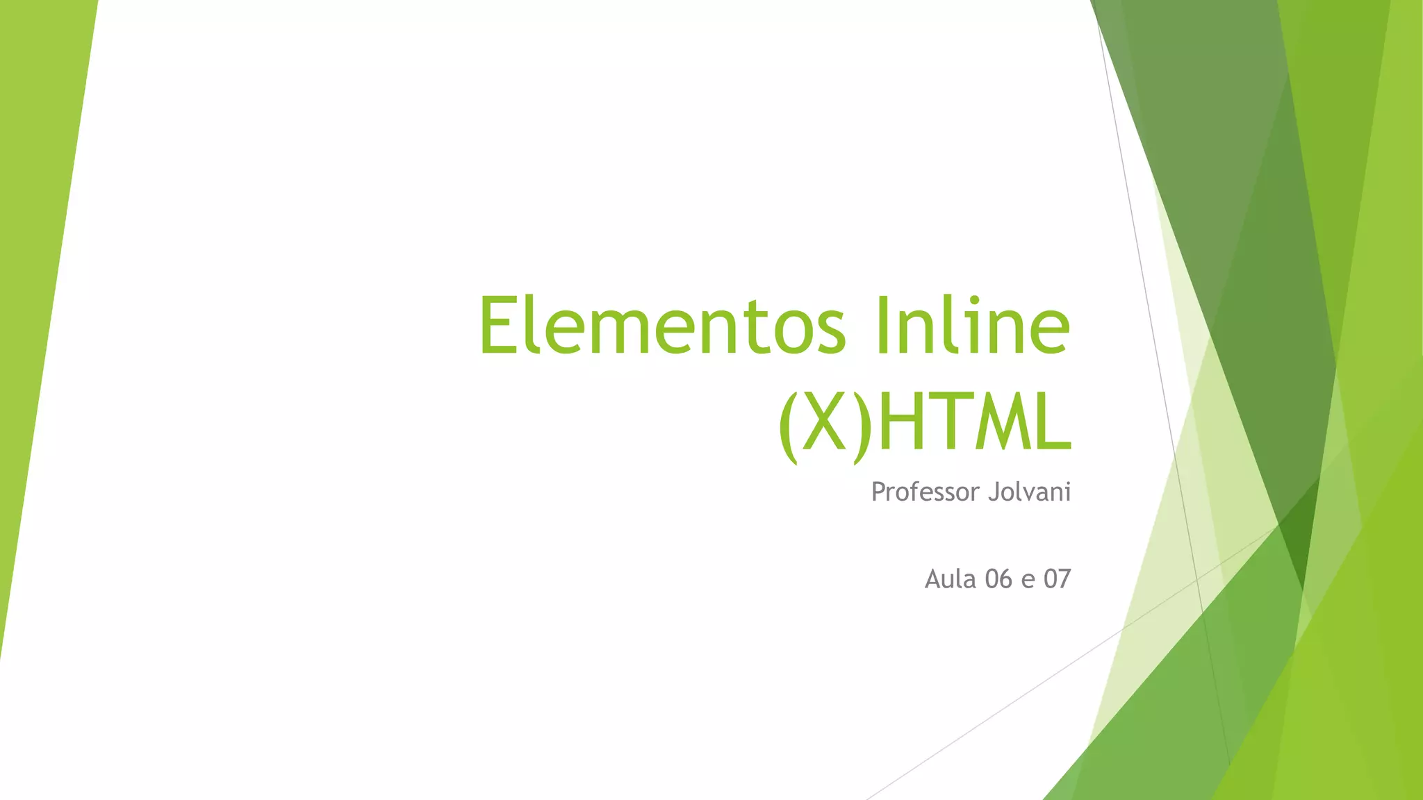 Este documento discute elementos inline no HTML. Ele explica que elementos inline não quebram linhas e podem ser aplicados dentro de uma linha, ao contrário de elementos de bloco. O documento então lista e descreve vários elementos inline comuns como <b>, <i>, <em>, <strong> e <sup>. Ele também menciona elementos inline que estão sendo descontinuados.
