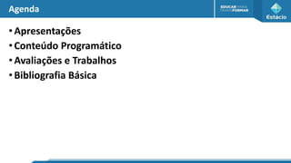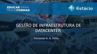 Este documento apresenta os detalhes de um curso sobre gestão de infraestrutura de data center. Apresenta o professor e seu currículo acadêmico e profissional, o conteúdo programático dividido em 4 módulos, as avaliações que incluem provas presenciais e digitais, e a bibliografia básica com livros recomendados.