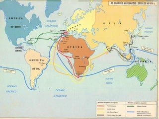 O documento resume a história de Portugal desde a queda do Império Romano até o início da era das grandes navegações. Inclui a reconquista cristã da Península Ibérica, a dinastia de Borgonha que expandiu Portugal, a revolução de Avis que estabeleceu a independência do país, e as primeiras grandes navegações portuguesas que levaram ao domínio do comércio marítimo global no século 15.