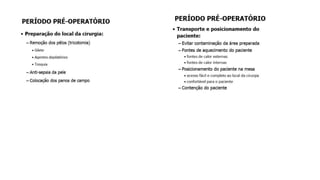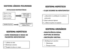3) Os principais riscos cirúrgicos estão relacionados à doença, à anestesia, à cirurgia em si e ao paciente, considerando fatores como idade, estado nutricional e condições im