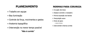 1) A cirurgia envolve procedimentos para diagnosticar e tratar doenças, modificando estruturas anatômicas ou funções fisiológicas para um propósito específico.