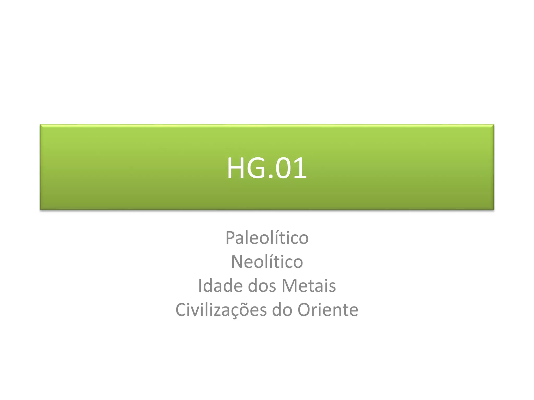 O documento descreve as principais eras da pré-história e algumas civilizações antigas, incluindo o Paleolítico, Neolítico, Idade dos Metais, Egito Antigo e Mesopotâmia. O Paleolítico foi marcado pela pedra lascada e caça/coleta. No Neolítico houve a domesticação de animais e plantas. A Idade dos Metais viu o surgimento das primeiras cidades. O Egito Antigo floresceu ao longo do rio Nilo, enquanto a Mesopot