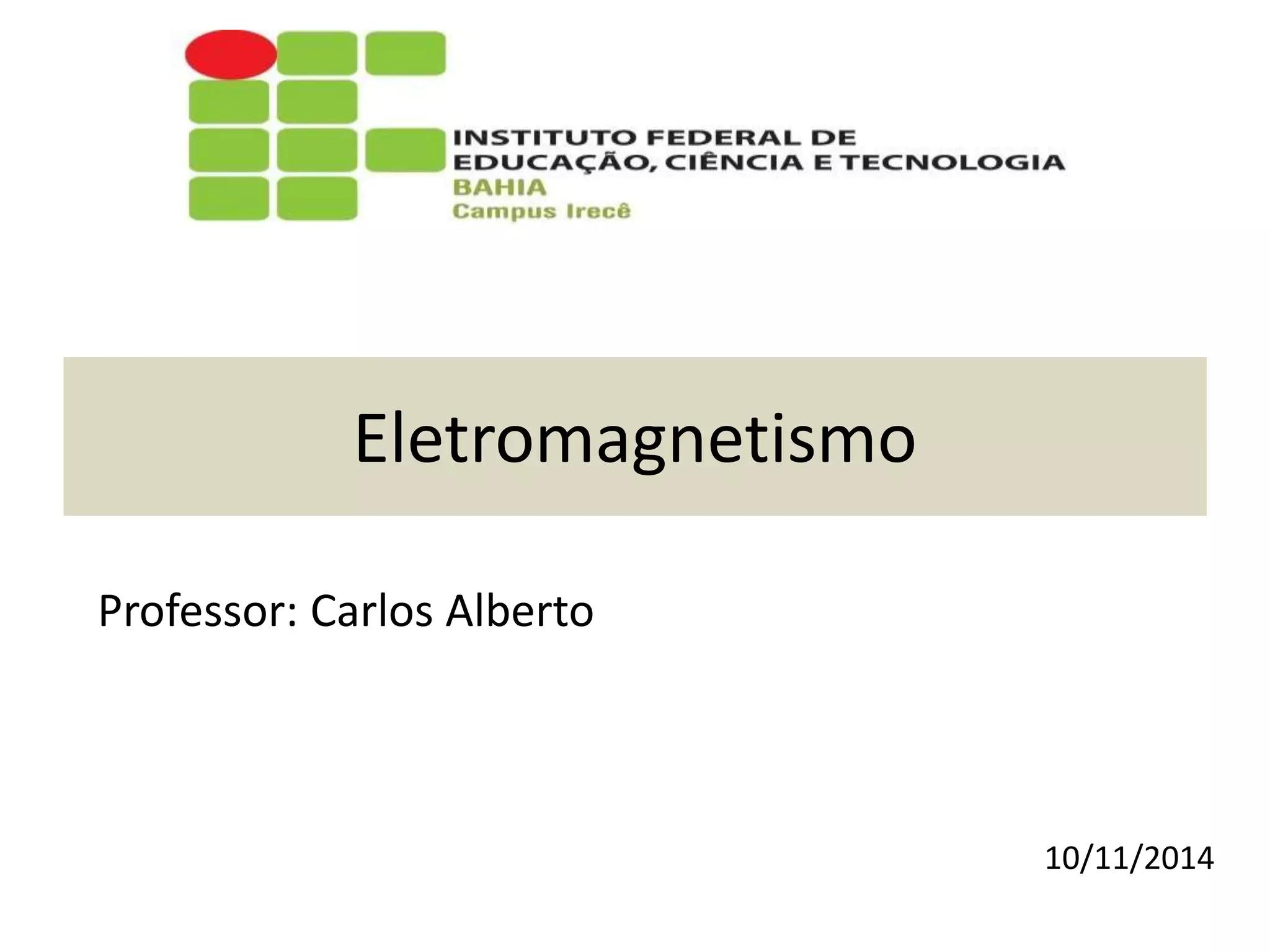 Este documento apresenta os principais tópicos sobre eletromagnetismo abordados em uma aula: