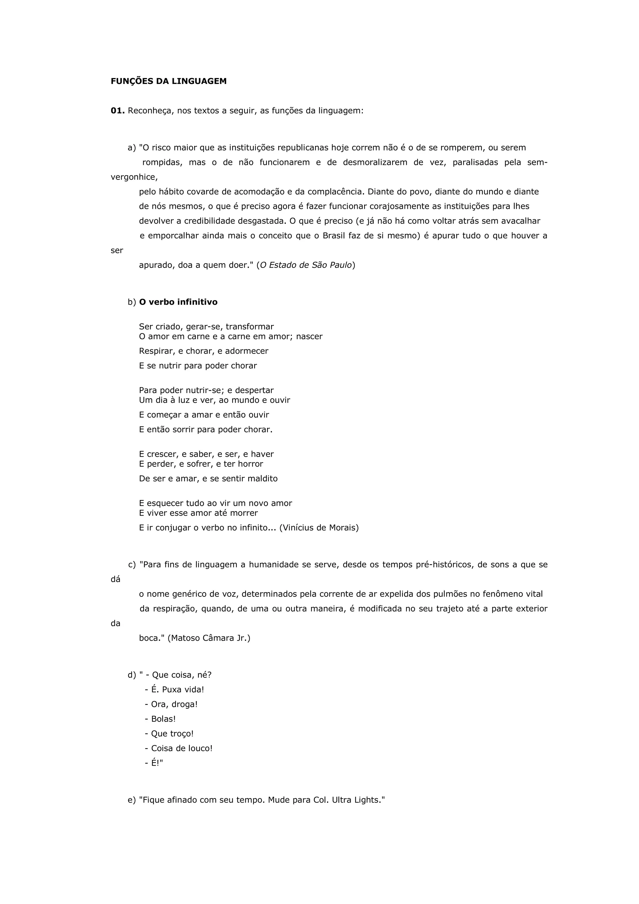 01.Reconheça, nos textos a seguir, as funções da linguagem: