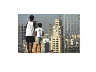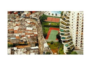 O documento explica as diferenças entre os termos "mais", "mas" e "más" em português. "Mais" compara quantidades, "mas" expressa contraste e "más" refere-se a qualidades ruins. O texto também discute sobre exclusão social e seus tipos, como econômica, social, cultural e comportamentos auto-destrutivos.