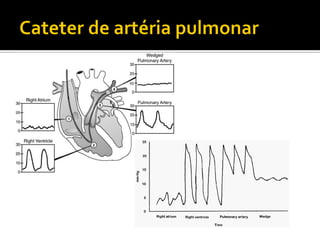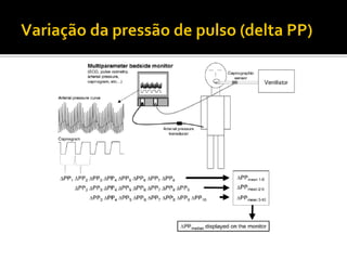 O documento discute métodos de monitoramento hemodinâmico em unidades de terapia intensiva, incluindo monitoramento contínuo de débito cardíaco, métodos para avaliar a resposta ao volume e marcadores metabólicos como lactato e saturação venosa de oxigênio. Vários estudos destacam a importância da validação dos métodos e do uso clínico adequado dos dados obtidos.