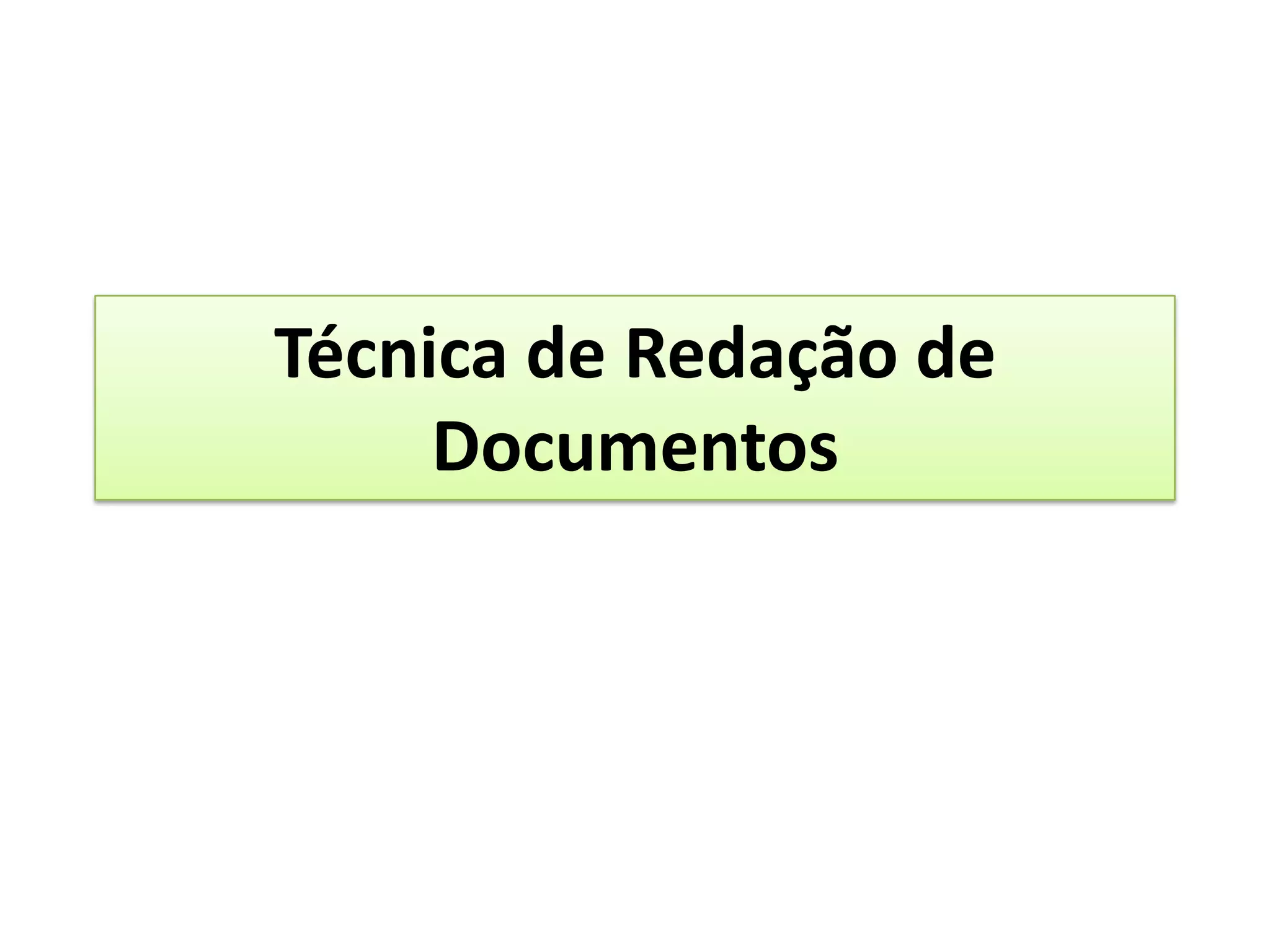 O documento discute técnicas de redação de documentos, definindo texto e redação. Apresenta as qualidades de um bom texto e defeitos a serem evitados em uma redação, como repetição, ambiguidade e obscuridade. Por fim, fornece dicas para planejar e redigir uma redação de forma clara e objetiva.