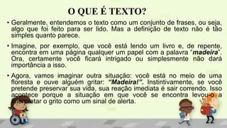 •Partindo do conceito de texto como sendo um