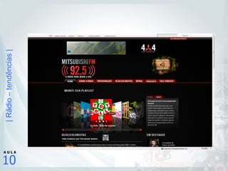 3) Tendências atuais do rádio como fortalecimento de redes, surgimento de rádios segmentadas e uso da internet.