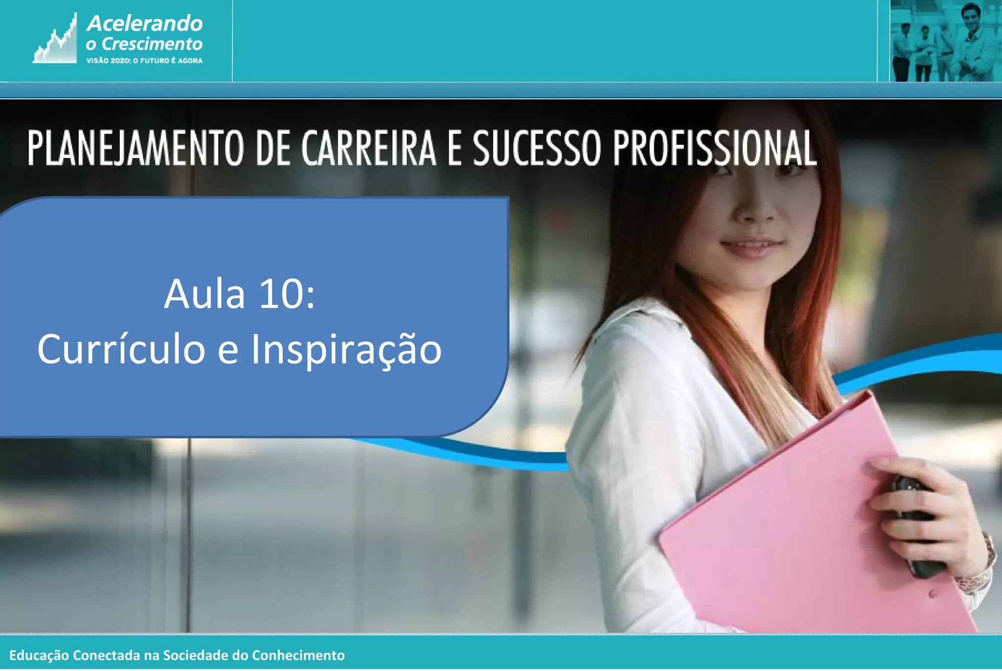 O documento discute currículos e carreiras na sociedade do conhecimento. Ele aborda como o cenário de trabalho está mudando para um modelo mais flexível e autônomo, com menos ênfase em carreiras fixas em uma empresa. Também fornece dicas sobre como elaborar um currículo eficaz, incluindo objetivos, experiência, qualificações, educação e disponibilidade salarial.