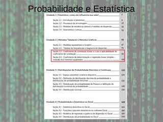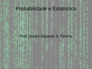 O documento apresenta cálculos estatísticos realizados em uma disciplina de Probabilidade e Estatística ministrada pelo Prof. Eduardo Pereira. Inclui cálculos de média, moda, mediana, amplitude para conjuntos de dados, além de cálculos de quartis, intervalos de confiança e correlação entre variáveis.
