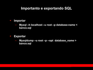 Observação: o operador NOT também pode ser utilizado com outros operadores SQL, como BETWEEN, LIKE e NULL.