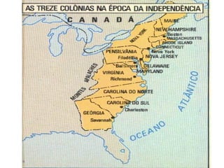 1) O documento descreve a história dos EUA desde a colonização até a Guerra Civil, incluindo as diferenças regionais, a independência, a expansão territorial e as divergências entre o Norte e o Sul;