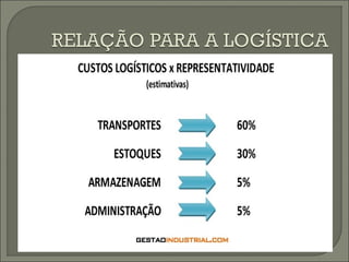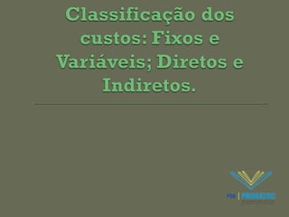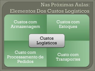 O documento classifica os custos de produção em diretos e indiretos, fixos e variáveis. Custos diretos podem ser alocados diretamente aos produtos enquanto custos indiretos precisam de rateio. Custos fixos permanecem constantes em diferentes níveis de produção, ao contrário dos custos variáveis, que variam com a produção. Logística objetiva fornecer alto nível de serviço ao menor custo possível, sendo os custos logísticos geralmente os segundos maiores.