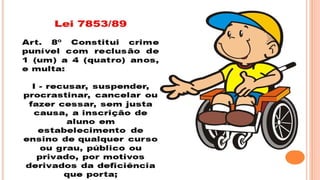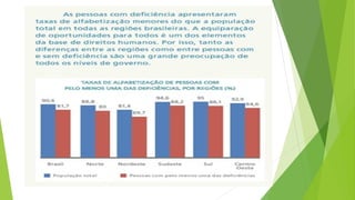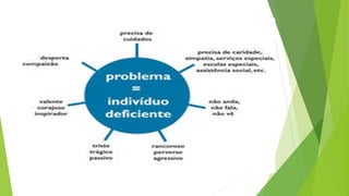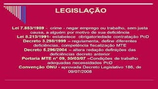 O documento descreve a evolução histórica da legislação e políticas de educação especial e inclusiva no Brasil, desde a Constituição de 1988 que garantiu educação para todos, passando pelas declarações internacionais dos anos 90-2000 que defenderam a educação inclusiva, até as leis e decretos brasileiros recentes que implementaram cada vez mais a inclusão em salas de aula regulares.
