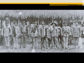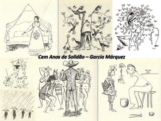 O documento descreve a infância e trajetória de Gabriel García Márquez, incluindo a influência da Guerra dos Mil Dias e do Massacre de Aracataca em sua obra. Também resume trechos importantes de Cem Anos de Solidão, como a descrição da Guerra dos Mil Dias e do massacre, que refletem eventos históricos da Colômbia.
