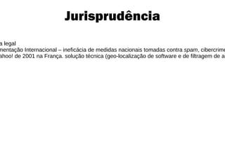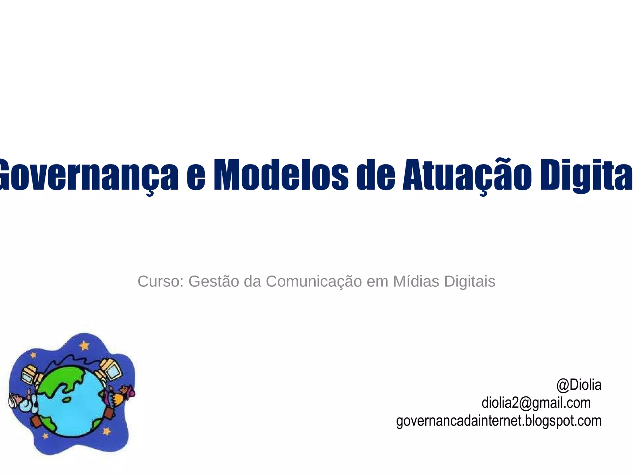 1. O documento discute os conceitos de governança da internet, incluindo questões, atores e abordagens. 2. Aborda tópicos como infraestrutura, padronização, aspectos econômicos, convergência de tecnologias, questões legais e socioculturais. 3. Fornece diretrizes para a governança da internet, como não reinventar a roda e promover uma abordagem holística.